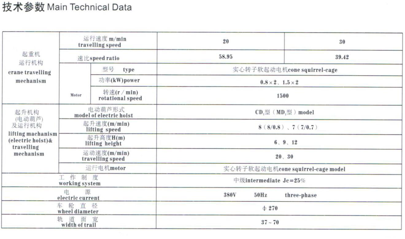 LDP 型电动单梁起重机是按GB/T 3811-2008、JB/T 1306-2008 标准设计制造的,与CD1、MD1 电动葫芦配套使用的轻型起重设备。操作方式主要是地面操纵方式(地操、遥控操作、地+遥操作)。如果有跨度和起升高度超出样本中所列的范围,我们还可以根据用户需求进行非标设计。
