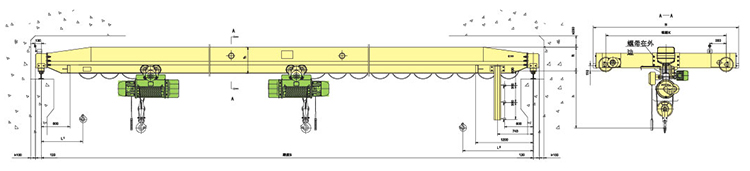 本产品常用起重量1t-20t,跨度为7.5m-22.5m,使用三相380V、50Hz电源,工作环境温度-25℃-40℃。也可根据用户要求单独设计。